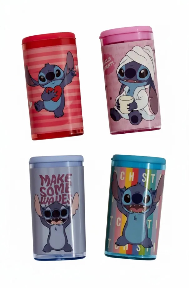 - Apontador com Depósito Stitch, uma combinação perfeita de funcionalidade e estilo que traz a magia do personagem Stitch para o seu material escolar. Com modelos exclusivos, estampa divertida e vibrante, este apontador se destaca pela praticidade e design encantador.