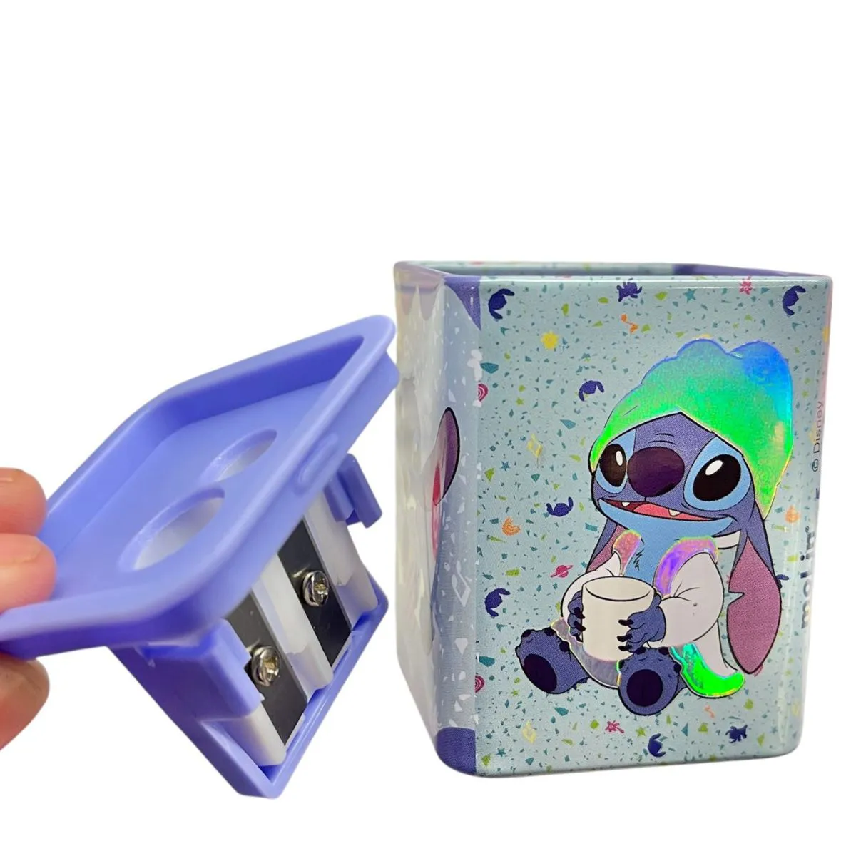 O Apontador Metálico Quadrado Stitch da Molin une praticidade e fofura em um só produto! Inspirado no adorável alienígena azul da Disney, conhecido por seu jeito bagunceiro e carismático, o apontador traz detalhes encantadores do personagem que deixam o material escolar ainda mais divertido.