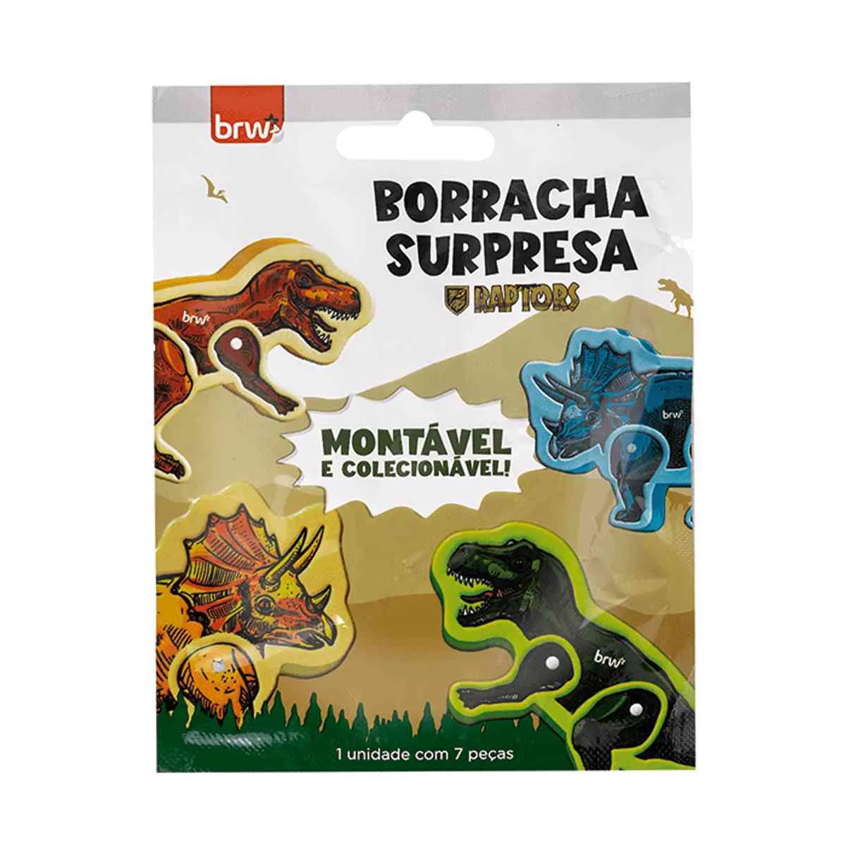 orracha Surpresa Raptors BO0421 BRW A Borracha Surpresa Raptors BRW BO0421 é perfeita para quem gosta de diversão na hora de estudar. Cada unidade vem com um modelo surpresa inspirado em dinossauros, tornando o aprendizado mais criativo e interessante. Fabricada em material macio e de alta qualidade, proporciona uma boa borracha sem danificar o papel. Especificações: