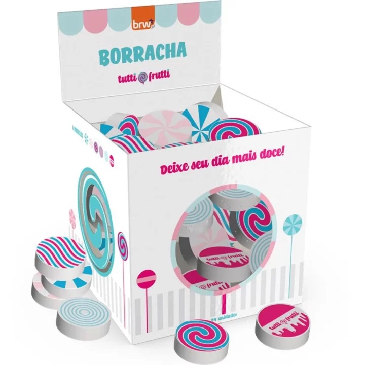 Leve a diversão para a sala de aula com as mini borrachas BRW Tutti-Frutti. Com formatos de balas doces são perfeitas para personalizar seu material escolar.