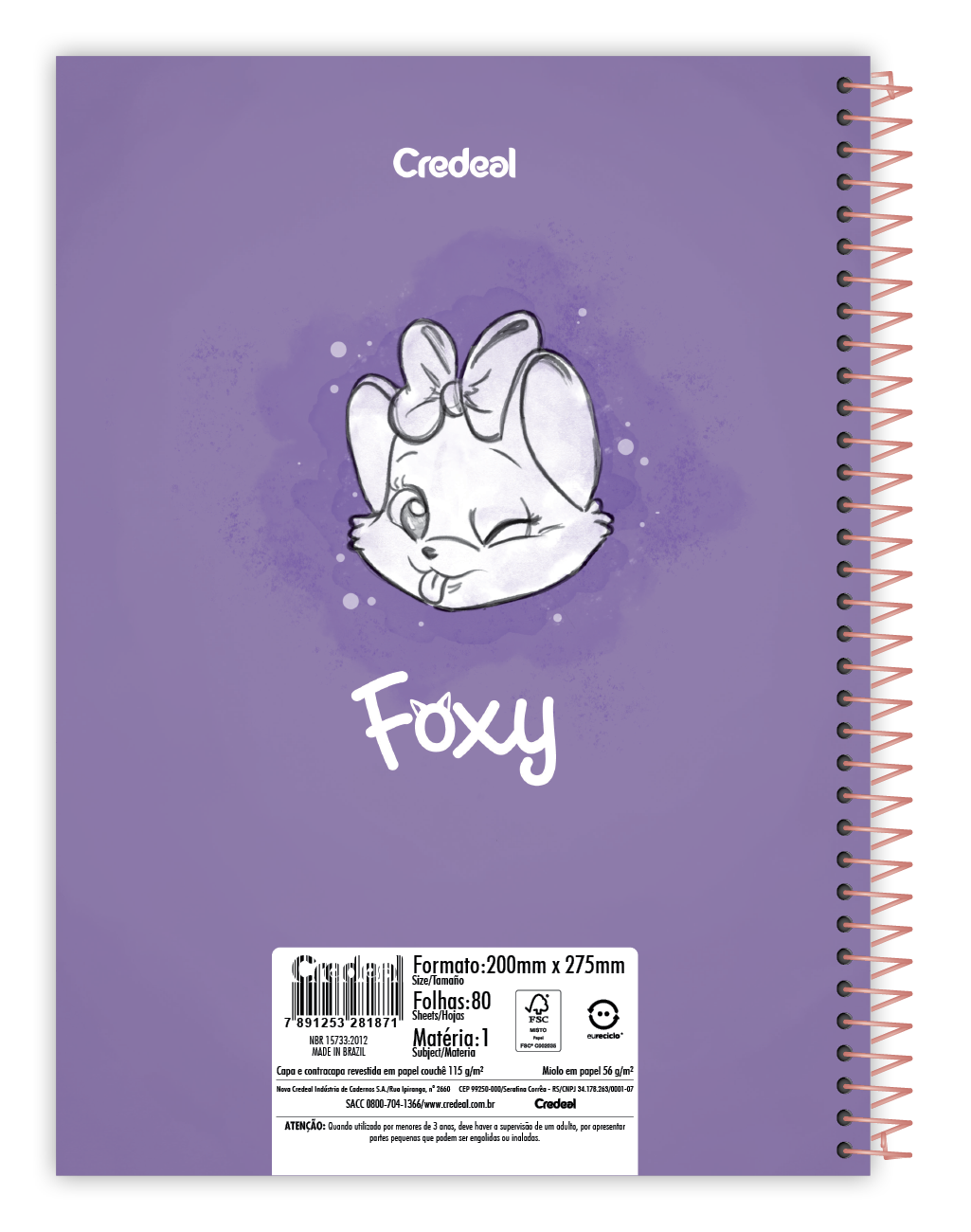 Caderno Capa Dura Univ. 1 mat. Foxy Teen 80fls Credeal – Adesivo