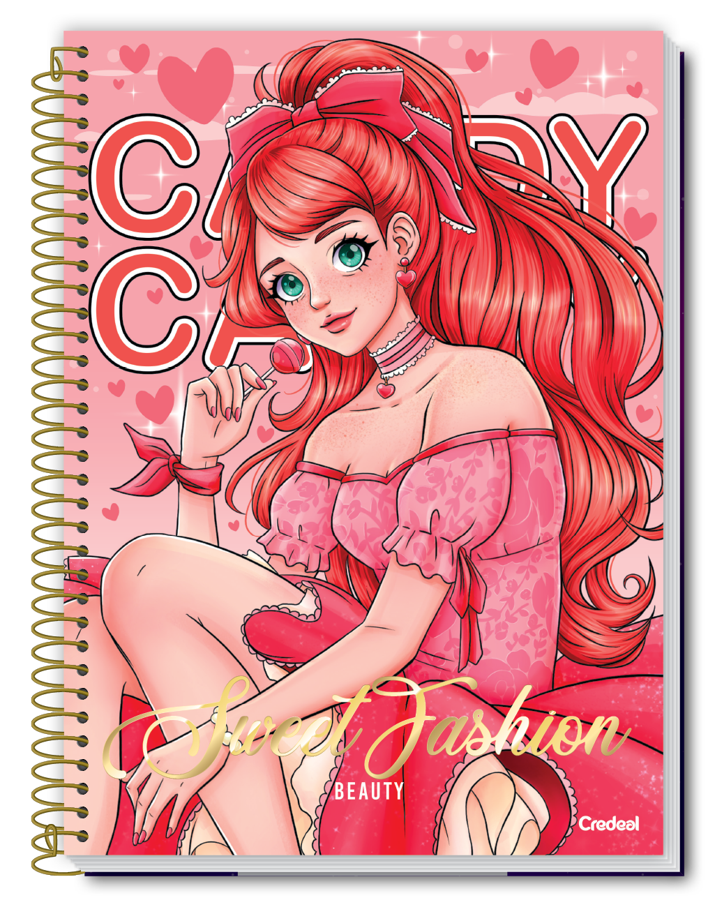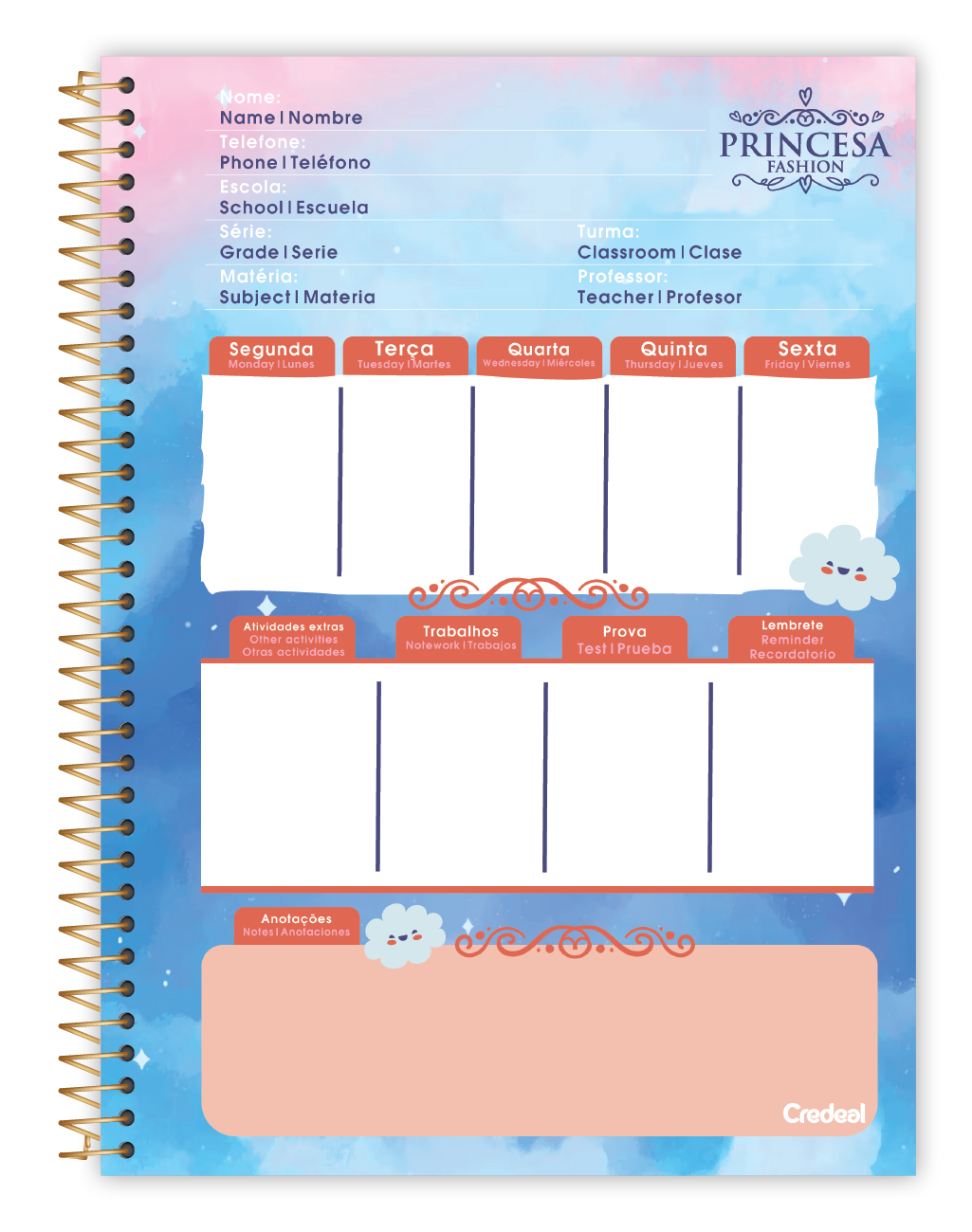 Caderno Capa Dura Univ. 1 mat. Princesa Fashion 80fls Credeal – Adesivo