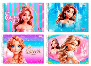 São cadernos de 160 folhas cada, com capa dura, tamanho 200mm x 275mm e espiral, que facilita o manuseio.