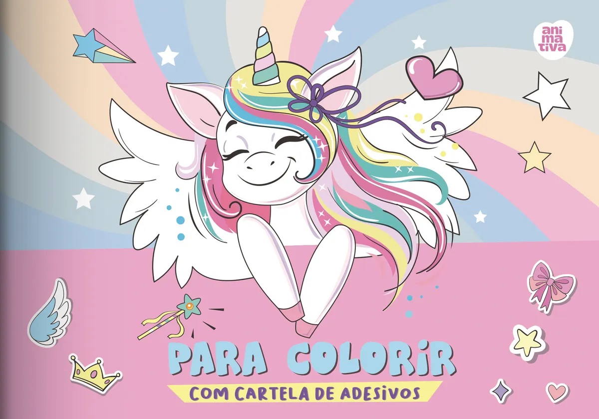 Caderno De Colorir Unicórnio PEQUENO 1/4 – Animativa Adesivos 16fls