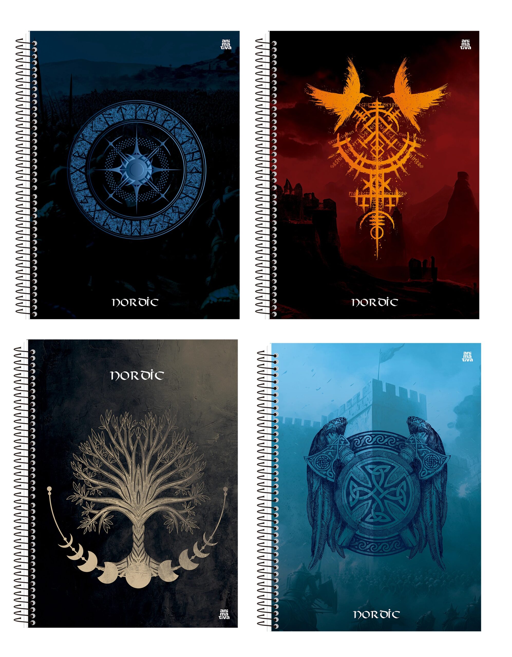 O Caderno Espiral 10 Matérias Nordic da Animativa é a escolha perfeita para quem busca praticidade, qualidade e um visual marcante. Inspirada na mitologia nórdica, a coleção traz elementos visuais poderosos com acabamento em laminação fosca e detalhes em UV, proporcionando sofisticação e personalidade ao seu material escolar.