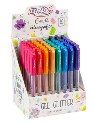 Super leve e com formato redondo, a Caneta Esferográfica Gel Glitter – Display BRW proporciona uma escrita fluida, suave, precisa e que desliza bastante ao longo da folha. Sua tampa é ventilada e é possível prendê-la em cadernos ou pastas. E o melhor, a caneta é resistente, de altíssima durabilidade e as cores são bem pigmentadas para deixar as anotações ainda mais lindas. Além disso, possui corpo e efeito de glitter! Seu uso é ideal para fazer detalhes em desenhos, lembretes em agendas, decorações em bullet journals, letterings, cartões comemorativos e marcações em informações importantes. Podem ser aplicadas tanto em papéis claros quanto escuros, sem borrar ou perder o brilho.