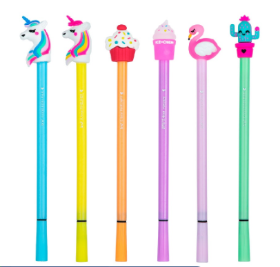 Contém: 1 (uma) caneta Dimensões aproximadas: Unicórnios 19×2,5cm, Cupcake 18×2,5cm, Sorvete 18x2cm, Flamingo 18×2,5cm e Cacto 18×2,3cm Composição: Resinas termoplásticas, tinta à base de corante, solventes e ponta sintética Marca: BRW