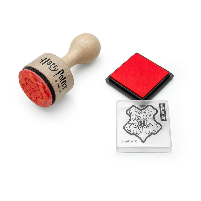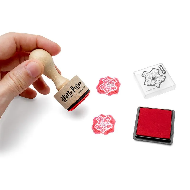 Ele é feito de madeira com o brasão Harry Potter no corpo e o carimbo simula o selo da Carta de Hogwarts. Acompanha almofada de tinta na cor vermelha com tampa protetora. O carimbo é indicado para uso em papel, ou seja: para carimbar e embelezar cadernos, blocos de anotações, folhas de papel e agendas.