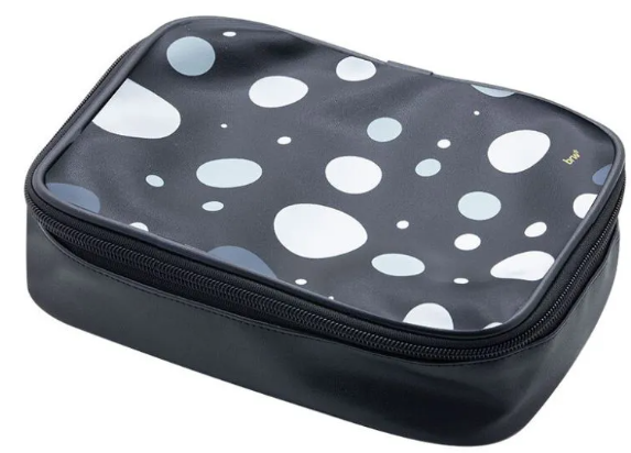 Estojo Box Estampado Preto Zíper C/ Pompom BRW