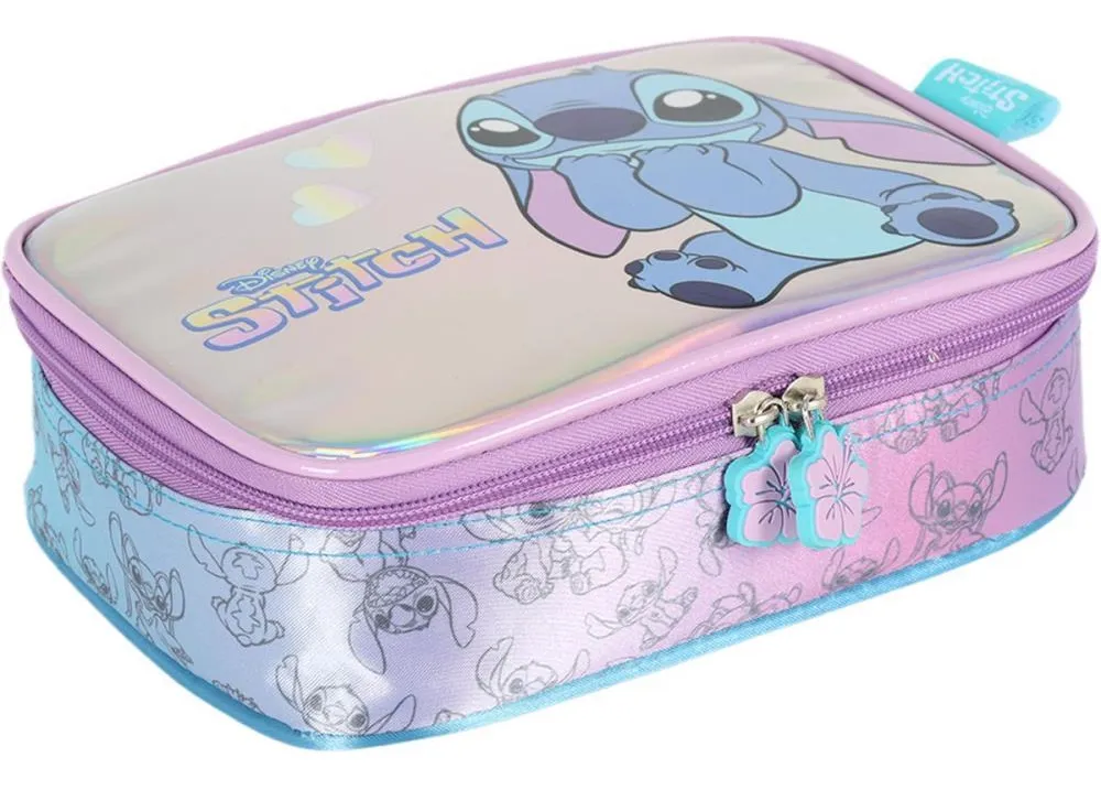 Estojo BOX STITCH Azul Holografico Luxcel O Estojo é prático, espaçoso e ideal para quem possui muitos lápis, canetas e outros materiais e acessórios. Este estojo possui material resistente, estruturado, espaçoso e divisórias que auxiliam na organização do material. Possui 36 elásticos para organizar lápis/canetas e capacidade para 100 canetas/lápis. Características: – Material de alta resistência, máxima leveza; – 1 compartimento espaçoso – Composição: 100% Poliéster – Medidas: 22x16x6cm – Com zíper personalizado!