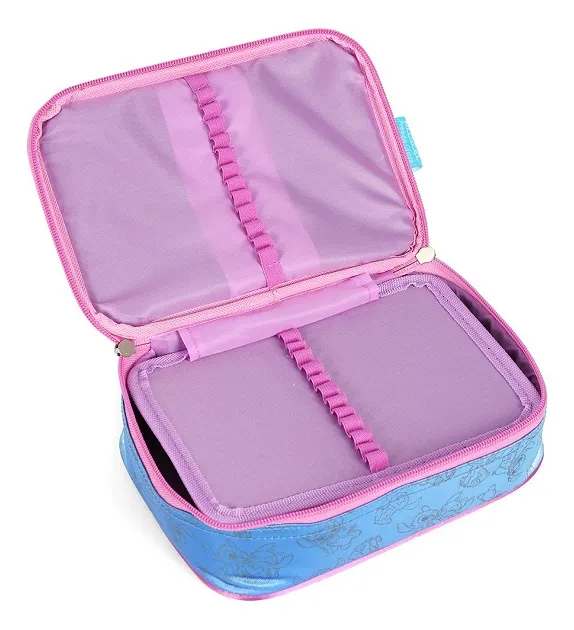 Estojo BOX STITCH Roxo Holografico Luxcel O Estojo é prático, espaçoso e ideal para quem possui muitos lápis, canetas e outros materiais e acessórios. Este estojo possui material resistente, estruturado, espaçoso e divisórias que auxiliam na organização do material. Possui 36 elásticos para organizar lápis/canetas e capacidade para 100 canetas/lápis. Características: – Material de alta resistência, máxima leveza; – 1 compartimento espaçoso – Composição: 100% Poliéster – Medidas: 22x16x6cm – Com zíper personalizado!