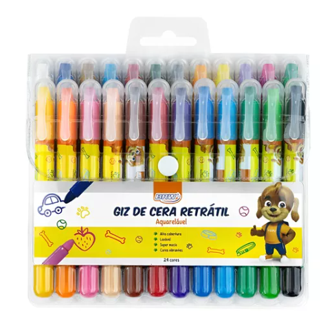 Giz De Cera Retrátil Aquarelável Com 24 Cores Brw