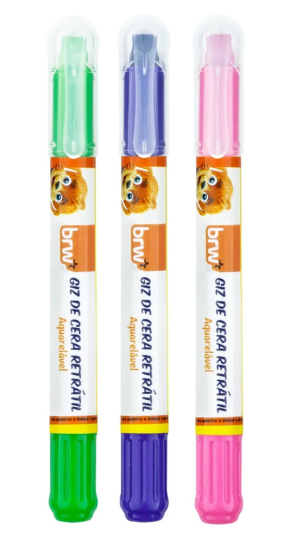 Descrição O Giz de Cera Retrátil 24 Cores brw é um material não tóxico altamente indicado para uso em projetos artísticos, trabalhos escolares, como auxiliar no aprendizado da escrita e no desenvolvimento da coordenação motora de crianças na fase pré-escolar. Possui a ponta fina e a escrita macia, garantindo traços marcantes que deslizam facilmente pelo papel. Também conta com formato de caneta anatômico que facilita ser pego e segurado durante longos períodos. Com cores bem vibrantes, o giz não suja as mãos, possui excelente cobertura de cor e ainda proporciona efeito aquarelável para se obter diferentes resultados.