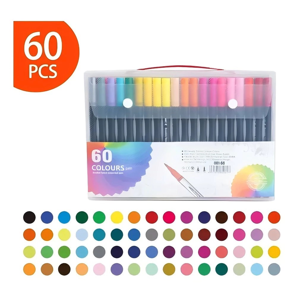 Dê vida às suas ideias e libere sua expressão artística com o Kit 60 Caneta 2 em 1 Brush Lettering e Ponta Fina Dual Pen Canetinha Colorir Desenho! Este conjunto versátil é um tesouro para artistas, calígrafos e entusiastas da arte em todos os níveis de habilidade. Características Principais: Dupla Função: Com uma ponta fina precisa e uma ponta em pincel flexível, estas canetas permitem uma ampla gama de técnicas de desenho, coloração e caligrafia. Variedade de Cores: Com 60 cores vibrantes e ricas, você terá todas as tonalidades necessárias para dar vida aos seus projetos mais criativos. Tinta de Alta Qualidade: Formuladas para oferecer cores intensas e duráveis, as tintas não mancham e secam rapidamente para resultados impecáveis. Design Ergonômico: As canetas possuem uma pegada confortável que permite horas de uso sem fadiga, ideal para longas sessões criativas. Versatilidade Ilimitada: Perfeito para lettering, colorir, desenhar, fazer esboços, bullet journaling e muito mais, este kit é um companheiro indispensável para sua jornada artística. Transforme sua imaginação em realidade com o Kit 60 Caneta 2 em 1 Brush Lettering e Ponta Fina Dual Pen Canetinha Colorir Desenho. Seja você um iniciante curioso ou um profissional experiente, este conjunto será sua ferramenta essencial para explorar novos horizontes criativos! Itens inclusos: