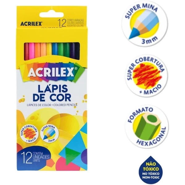 Lápis de Cor 12 Cores 3mm – Acrilex