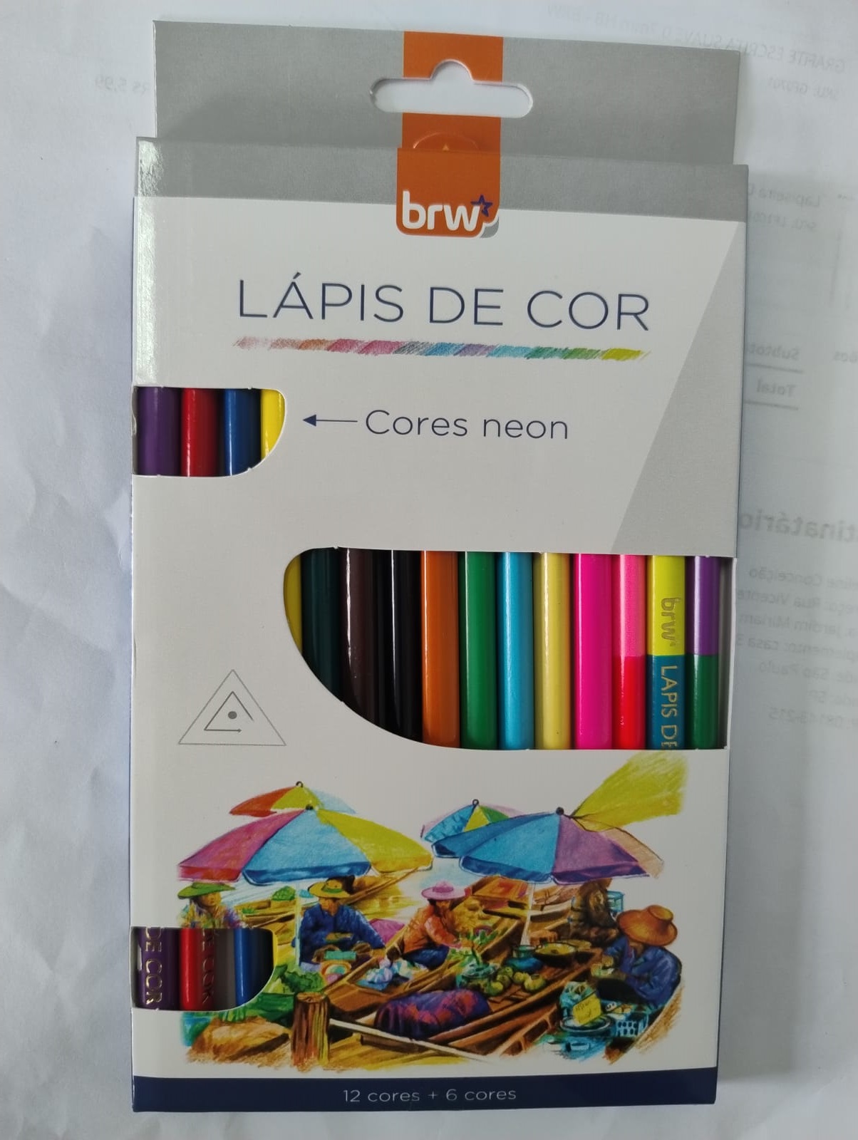 Lápis de Cor 12 Cores + 6 Tons Neon Triangular – BRW – LP0226