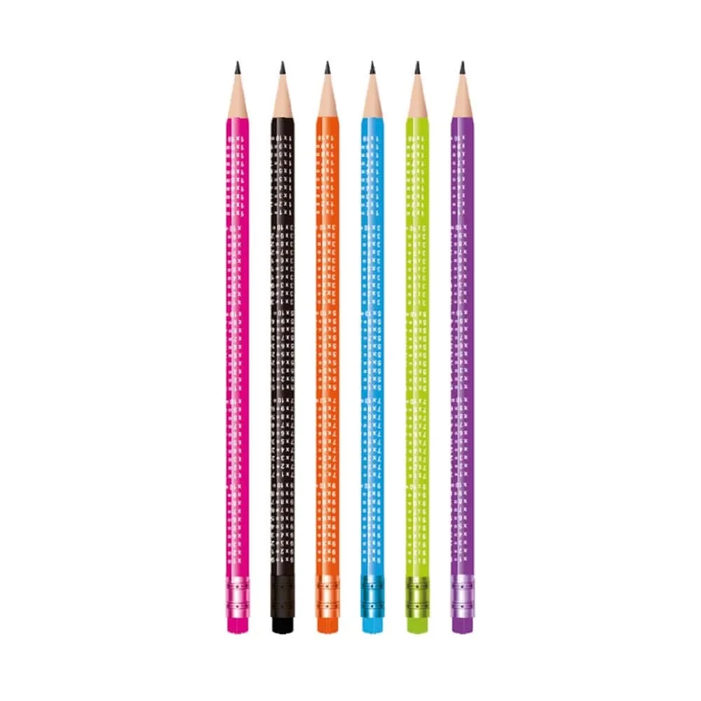 Os lápis grafite HB são ideais para escrita e desenho, proporcionando uma escrita suave e precisa. A tabuada impressa em cada lápis serve como uma ferramenta de consulta rápida, facilitando a resolução de problemas matemáticos e a memorização dos resultados.