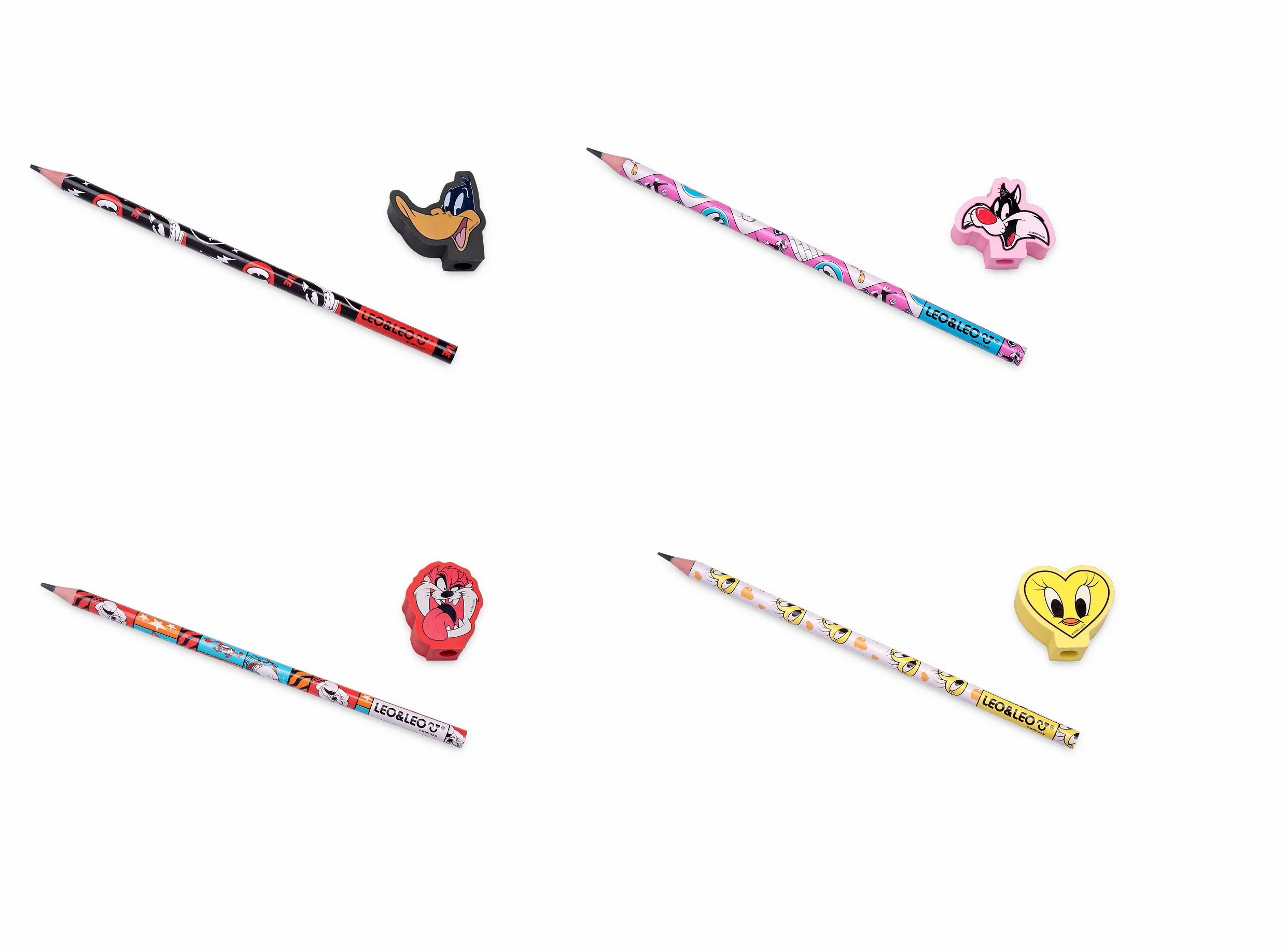 Escrever ou desenhar com lápis não será mais a mesma coisa. Com o Lápis HB Looney Tunes Leo&Leo, os personagens mais clássicos e amados por todo mundo serão a companhia ideal para as tarefas do cotidiano, seja na escola ou no trabalho. O lápis tem corpo redondo e 4 estampas fofas e únicas. No topo a borracha é removível, possui 4 formatos diferentes e decorada com 4 estampas divertidas e exclusivas. O material é atóxico e resistente, sendo que o lápis é fácil de apontar, tem traço firme e escreve macio, e a borracha apaga superbem. Para estudar, aprender e trabalhar de maneira alegre e sempre estimulado,basta ter em mãos o Lápis HB Looney Tunes Leo&Leo, a companhia mais divertida para todos os dias.