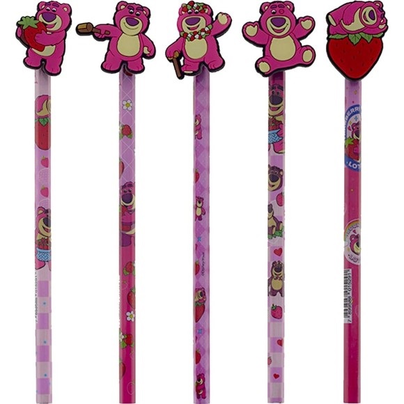 • Tema divertido: Ponteira emborrachada do Lotso disponível em 5 modelos diferentes.- • Escrita macia: Grafite HB que proporciona traços uniformes e confortáveis.