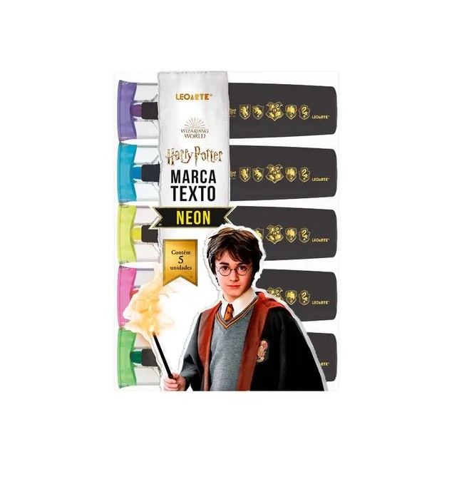 Marca Texto Neon Harry Potter Estojo 5 Cores Leoarte