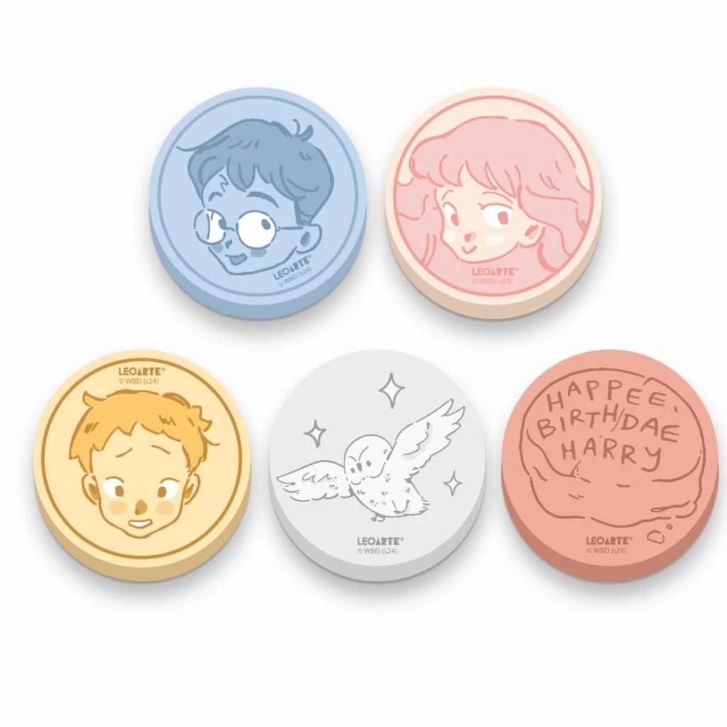 O Bloco Adesivo Mini com Formato Harry Potter – Blocos 50 Folhas Cada LeoArte é totalmente inspirado no universo mágico que conquistou milhares crianças e adultos em diversos países. São blocos adesivos em formato redondo, com 50 folhas cada bloco. Temos com ilustração do Harry Potter, da Hermione, do Rony, do bolo e da coruja Edwiges. Todos muito lindos e fofos!