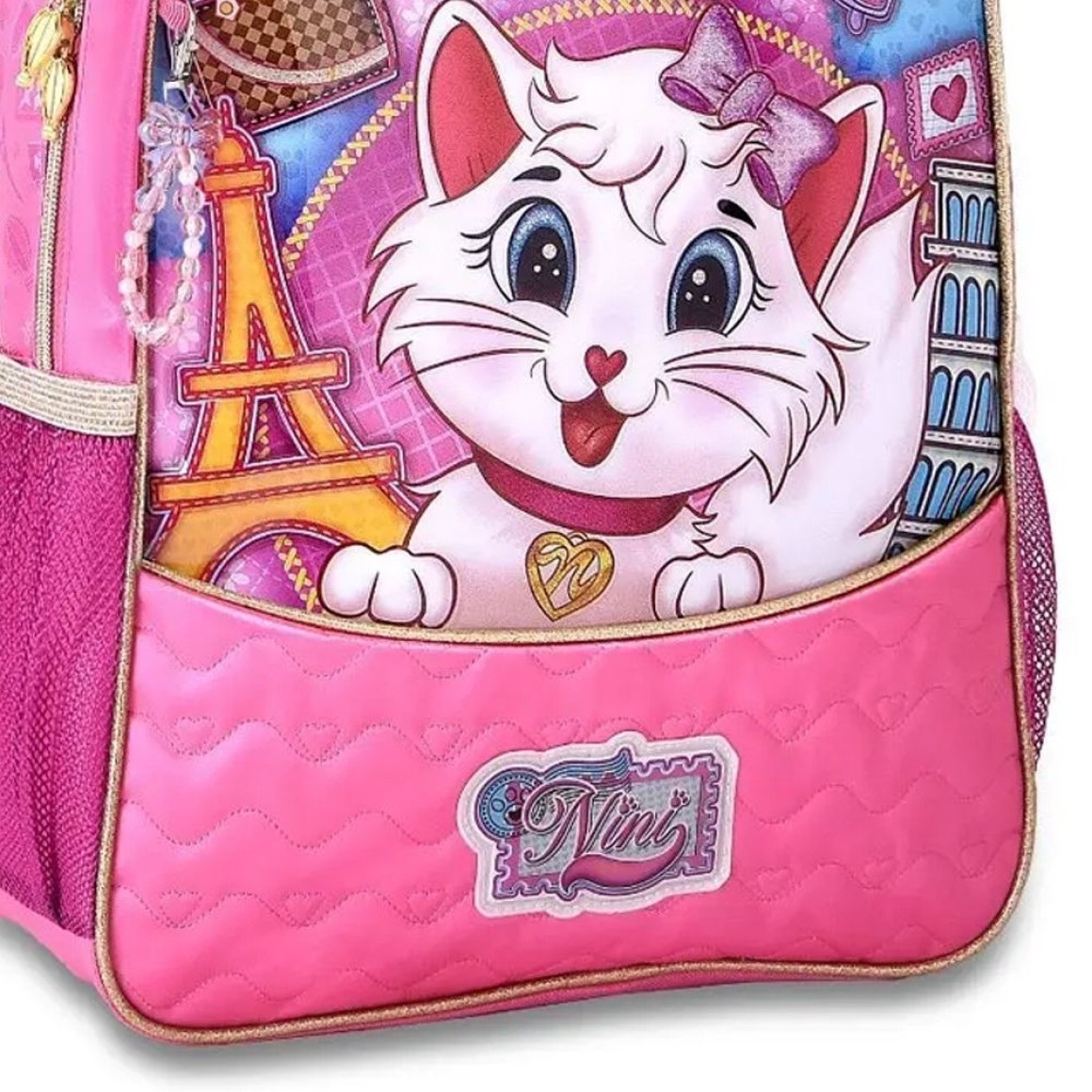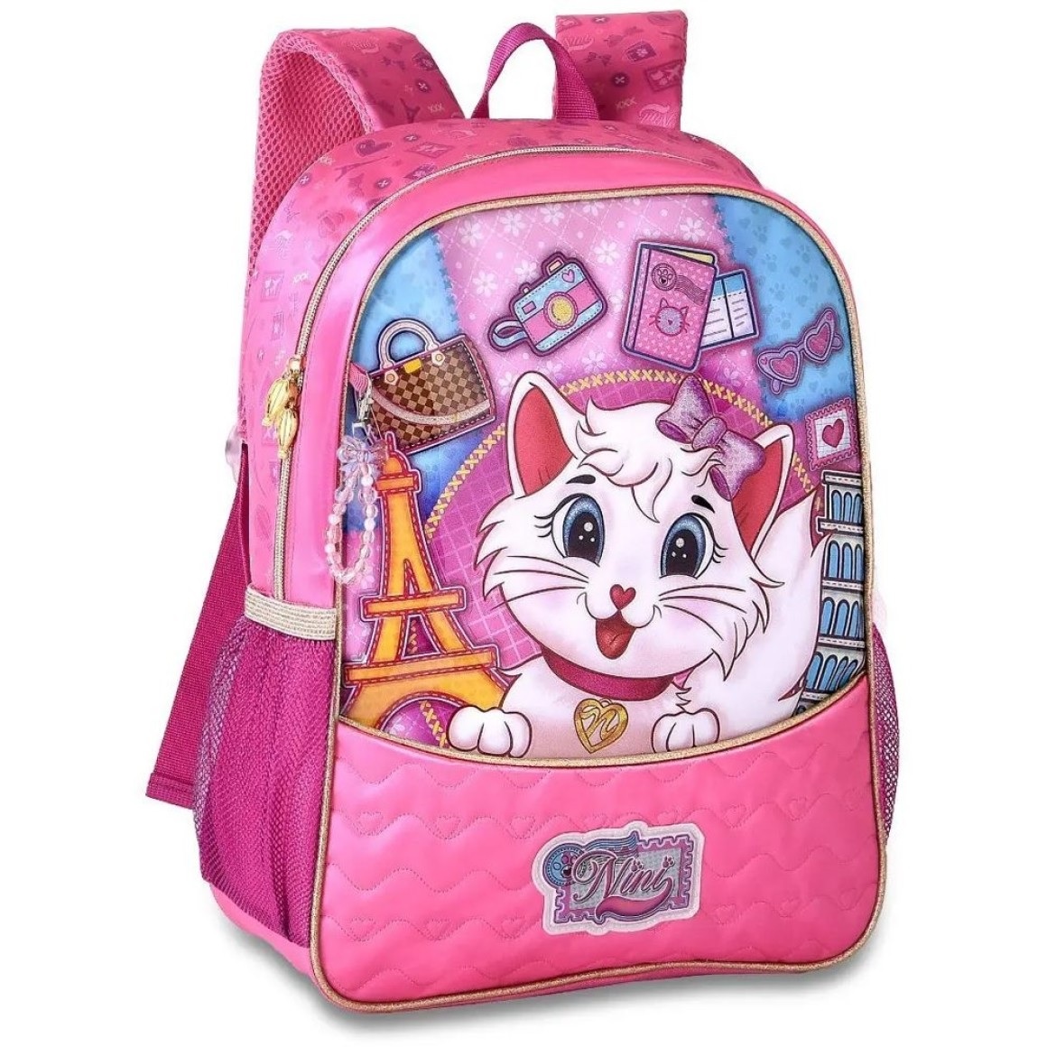 A Mochila Gatinha Nini da Clio Style é pura fofura para o dia a dia escolar! Com design encantador da personagem Nini, essa mochila é ideal para crianças que adoram estilo e praticidade. Confeccionada em poliéster resistente e frente em PVC com efeito brilhoso, oferece durabilidade e muito charme. Perfeita para acompanhar a rotina com alegria e conforto!