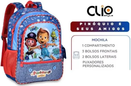 Mochila Costas Grande Pinóquio e Seus Amigos Clio PC23151J