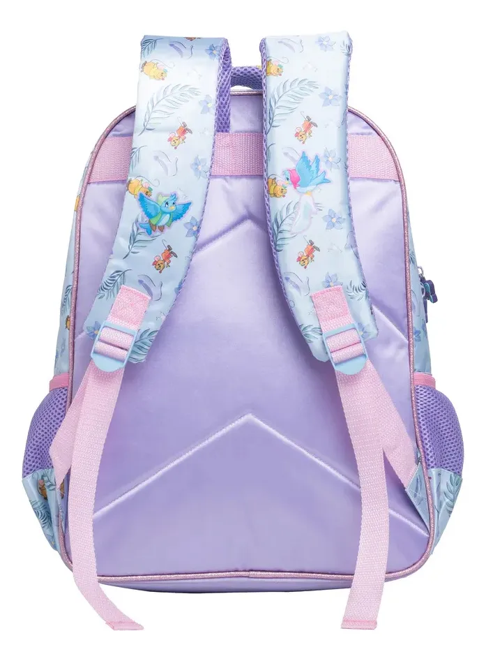 As alças de ombro estampadas são acolchoadas, assim como a alça de mão, garantindo conforto no uso diário. O piping com glitter, o zíper tratorado e os puxadores emborrachados personalizados completam o visual mágico com detalhes encantadores.