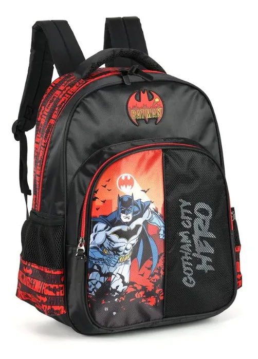 Mochila de Costas Batman Juvenil Luxcel Vermelha Resistente