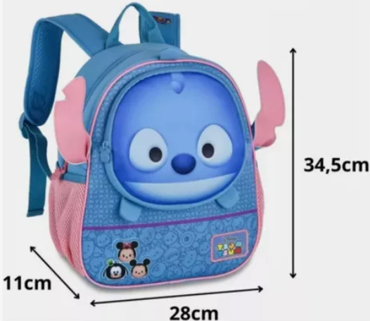 Estampa Exclusiva: Divirta-se com a charmosa estampa do Stitch Tsum. Bolso Principal Amplo: Perfeito para organizar cadernos, brinquedos e outros itens essenciais. Inclui um bolso frontal para objetos menores. Conforto Total: Alças acolchoadas e ajustáveis garantem praticidade e conforto durante o uso. Design Vibrante: Detalhes em azul vibrante capturam a essência do personagem mais divertido da Disney.