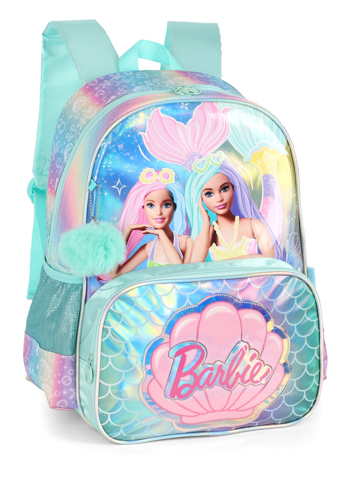 Mochila Escolar alça Barbie Sereia Holográfico Verde Luxcel
