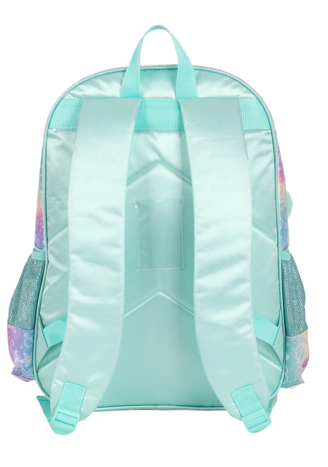Início→Material Escolar→Mochilas→Mochila Infantil→Mochila Escolar alça Barbie Sereia Holográfico Verde Luxcel