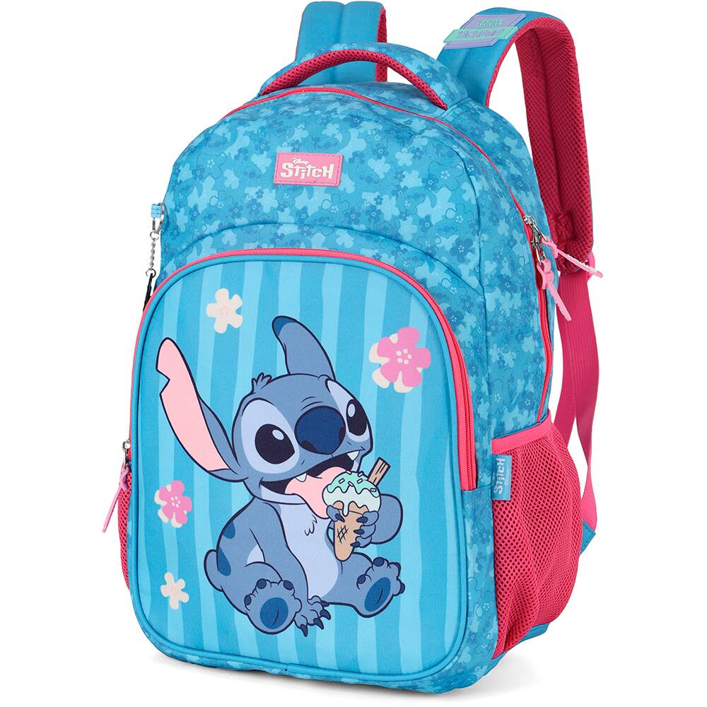 - Mochila escolar em poliéster: Stitch