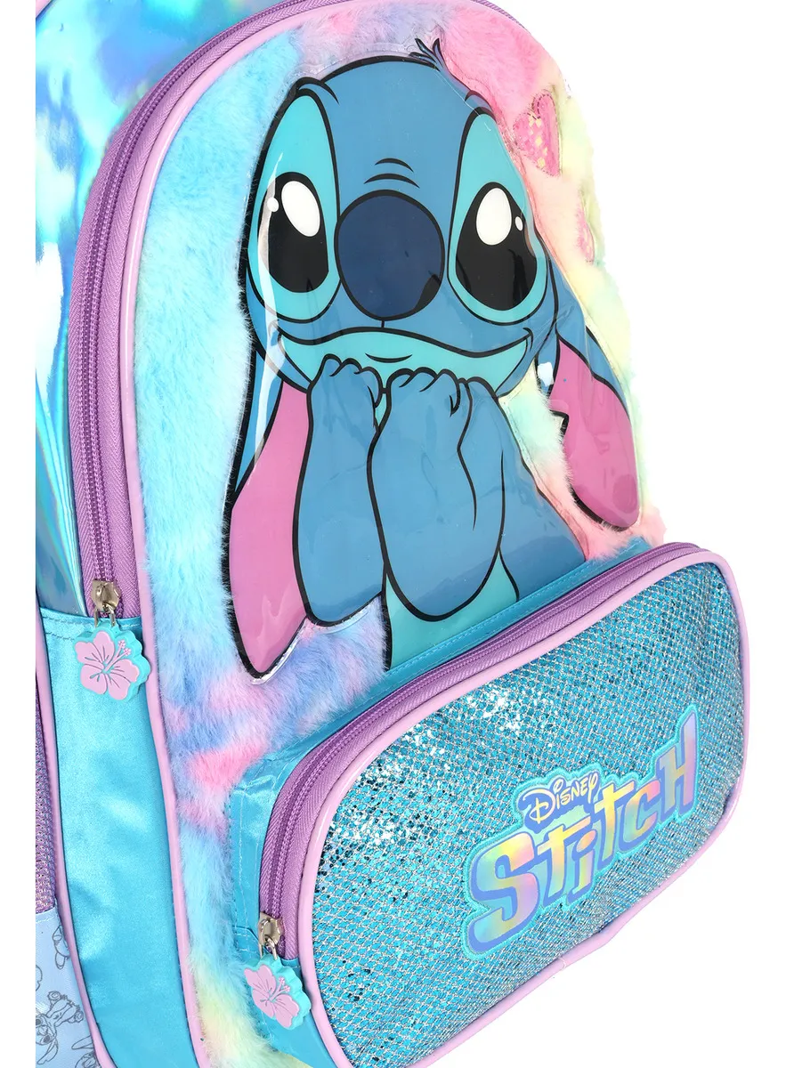 Mochila Escolar Stitch Luxcel Azul Pelucia 42411