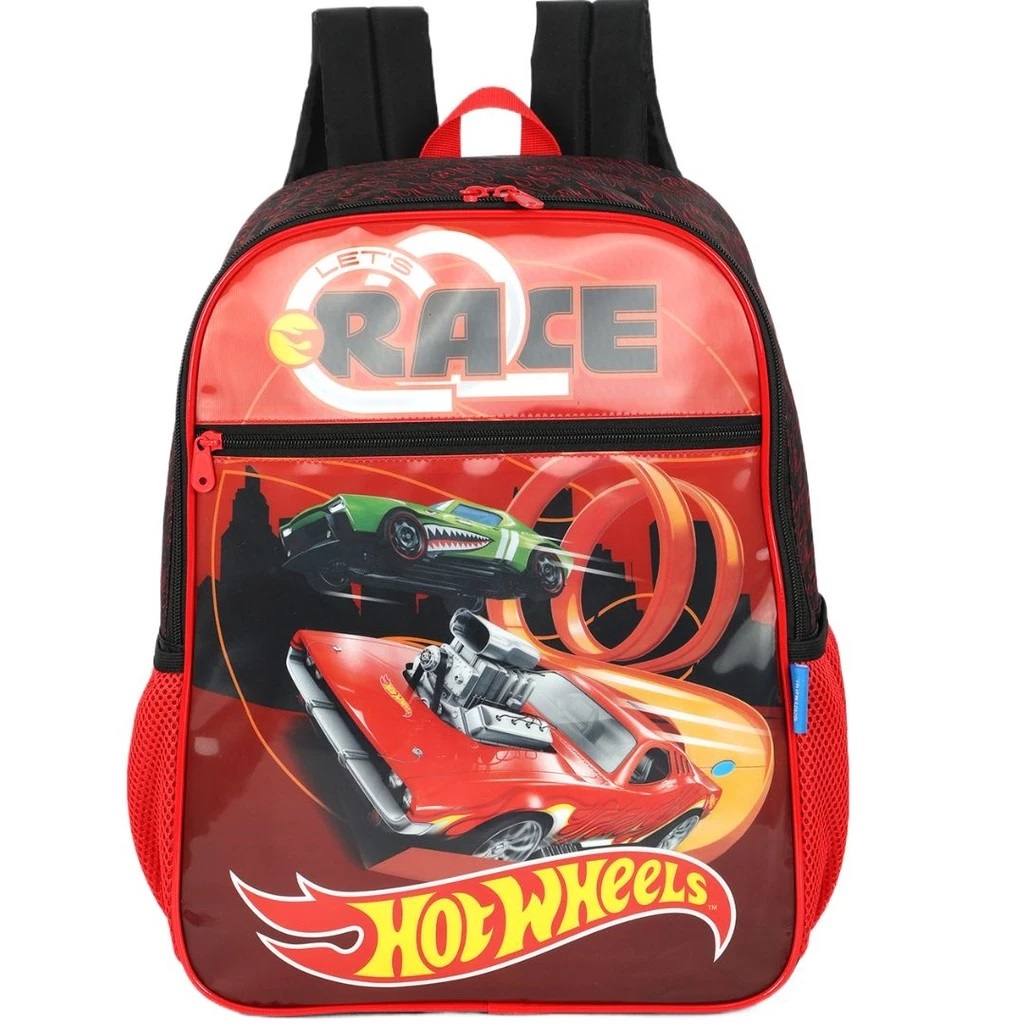 Ideal para crianças em idade escolar, a mochila Costas Hot Wheels não conta com rodas, o que a torna leve e fácil de carregar, pesando apenas 0,28 kg