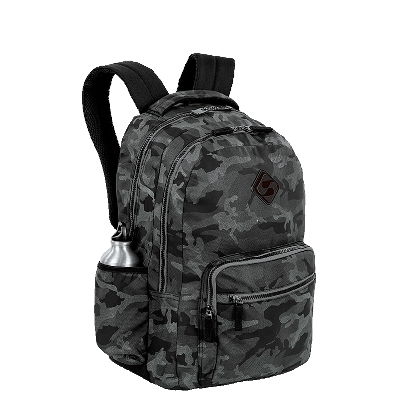 Mochila 2 Compartimentos Sestini College 3 – Camuflado Cinza produzida em poliéster, possui alças e costas espumadas, bolso escondido nas costas, bolso para celular na alça e muito mais.