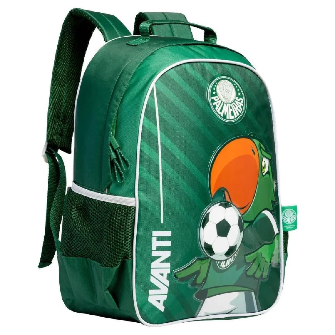 Leve o Palmeiras para a escola com essa mochila oficial, feita para os pequenos Palestrinos que querem praticidade e estilo! Características principais: – Design oficial do Verdão: o Periquito em patch de PVC com detalhes em relevo e forro personalizado que garantem autenticidade e estilo. – Conforto total: Alças acolchoadas e ajustáveis, além de painel traseiro reforçado para maior conforto e suporte durante o uso. – Organização inteligente: Compartimento principal amplo, perfeito para livros, cadernos e materiais escolares. – Bolsos laterais em tela: Ideal para garrafas e pequenos acessórios, mantendo tudo ao alcance das mãos. – Zíper bicolor de alta resistência: Com dentes em nylon e puxadores em corda, unindo praticidade e estilo. – Tira de mão forrada: Para carregar com conforto.