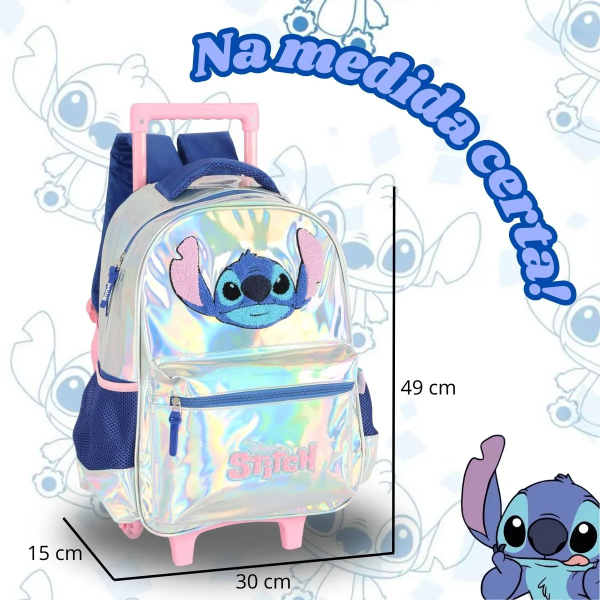 Mochila Rodinha Stitch Original da Luxcel Holografica