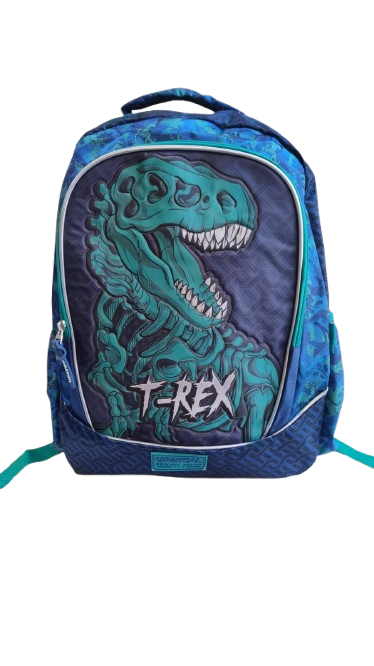 A mochila de costas T-Rex é produzida em Poliéster , descolada e com material resistente, a mochila Clio Style possui 1 bolso grande com um amplo espaço interno para você levar cadernos, livros… e ainda tem 2 bolsos laterais pequenos ideal para guardar garrafa, alças acolchoadas e com regulagem..