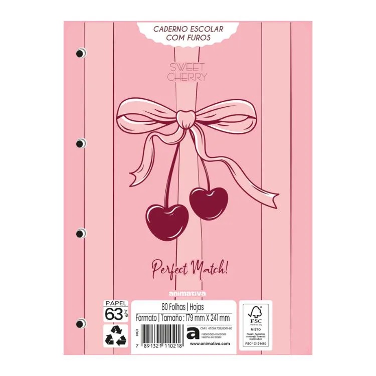 Refil P/ Caderno Argolado Colegial Sweet Cherry 80fls 11021 ANIMATIVA
