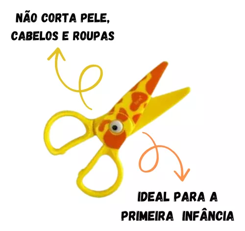 A Tesoura Escolar Plástica 13 cm brw Pet Zoo é ideal para a primeira infância, não corta pele, cabelo e roupa.